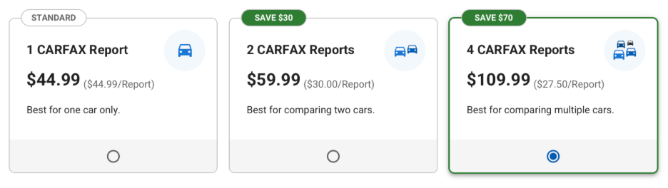 Carfax positions itself as a premium service with pricing to match:
